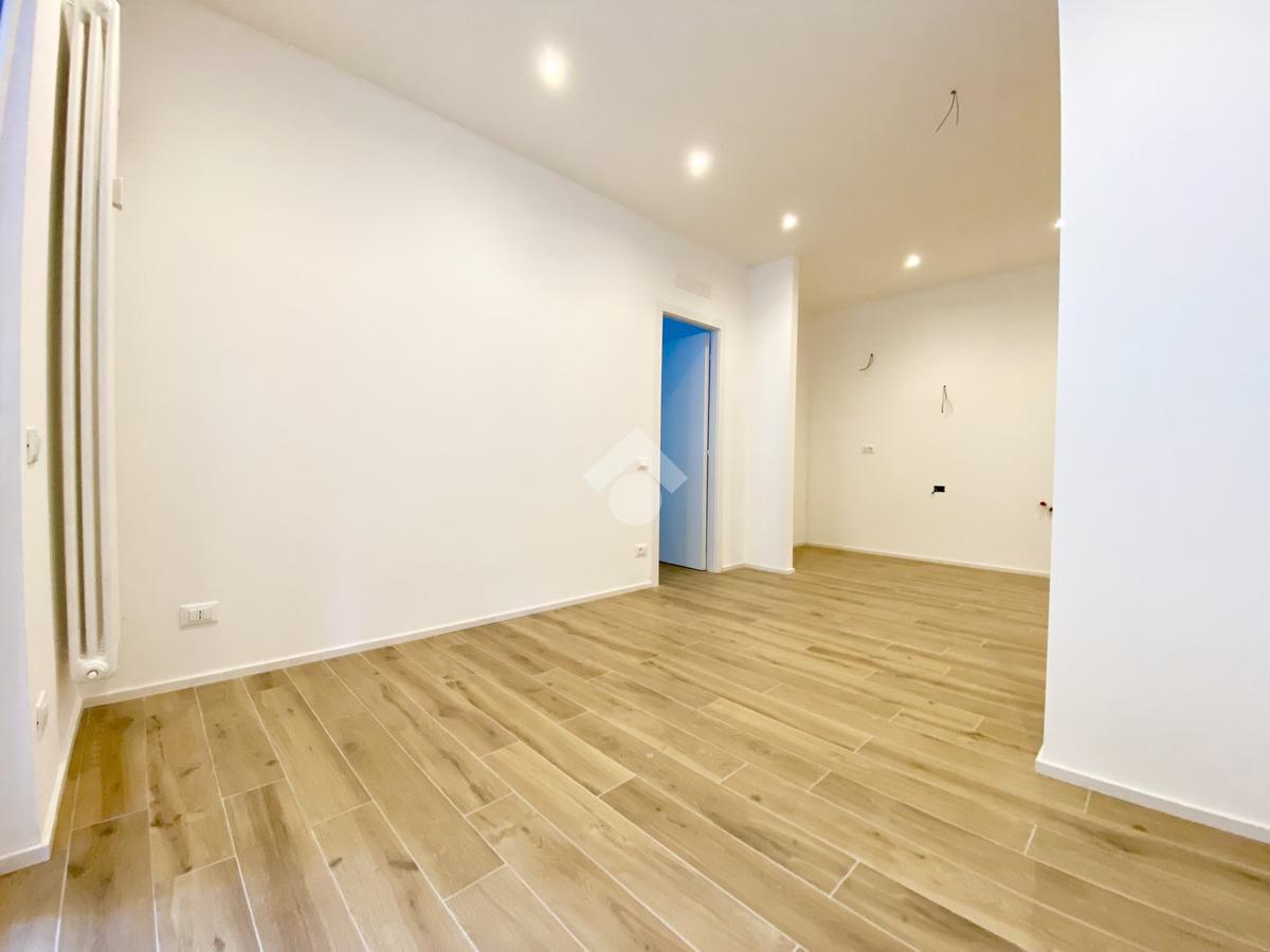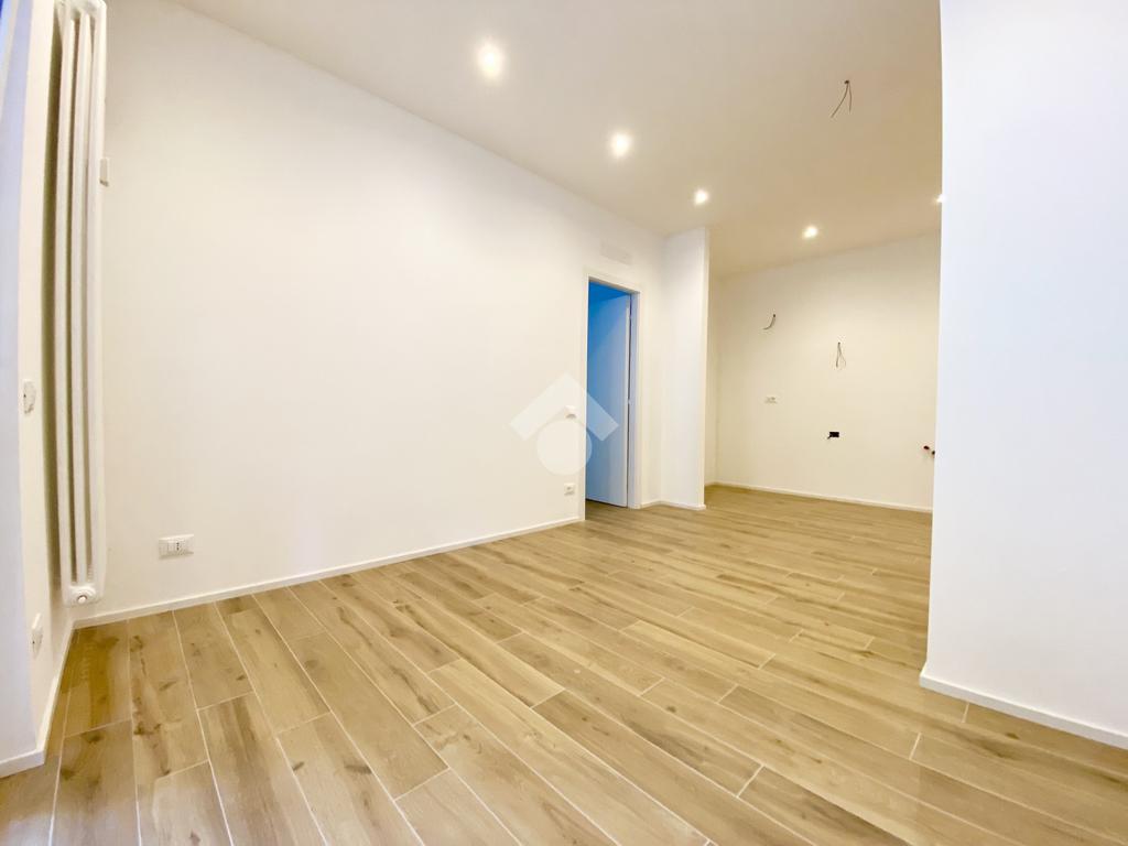 ingresso openspace composto dal soggiorno e dall'angolo cottura che insieme formano un unico ambiente dal quale si può accedere al terrazzino vivibile, una camera da letto matrimoniale ed una camera da letto singola anch'essa con l'accesso al terrazzino, un elegante bagno completo e finestrato con mosaico in doccia, una dispensa con attacco lavatrice per lavanderia ed infine una cantina al piano strada del condominio.