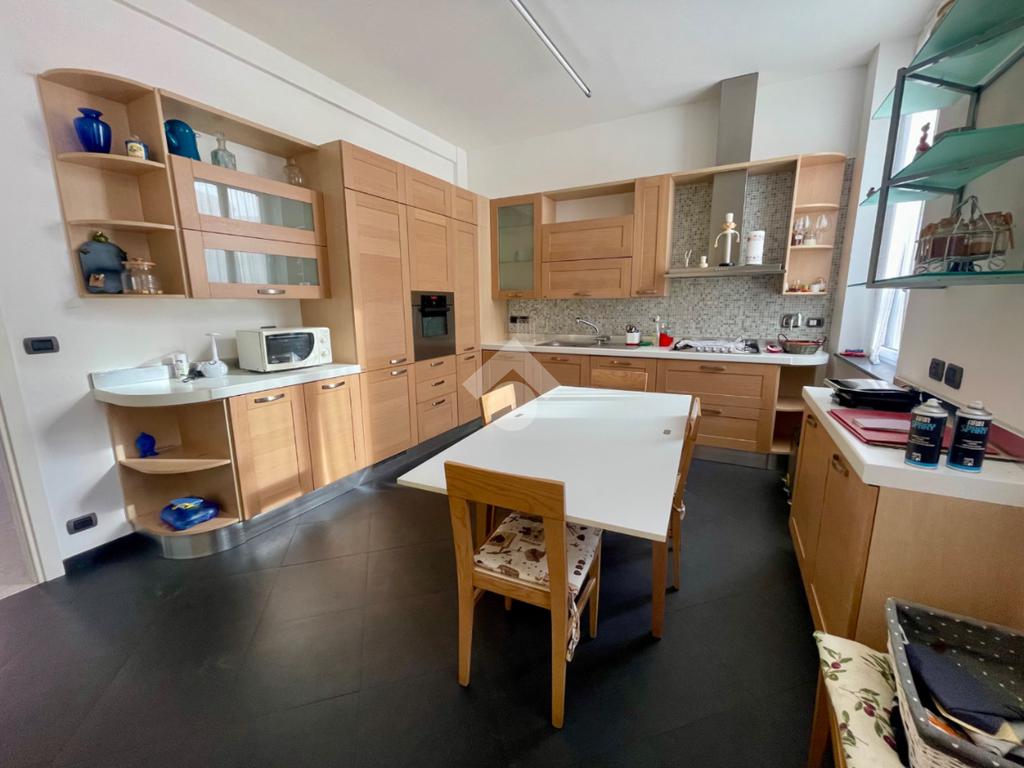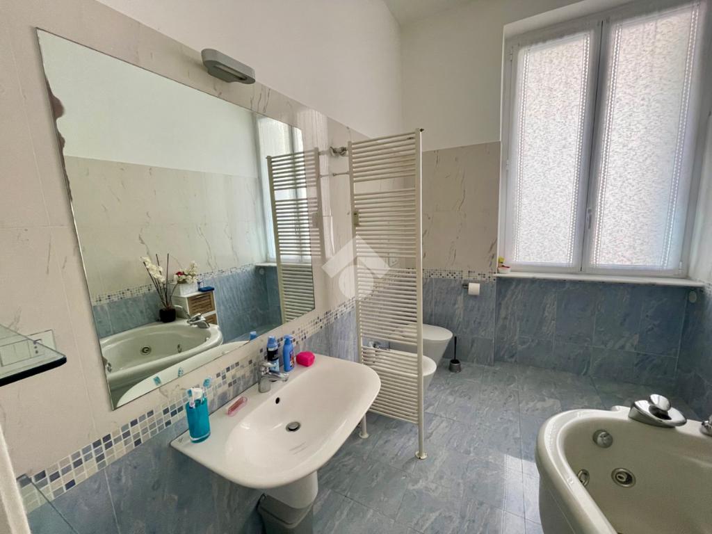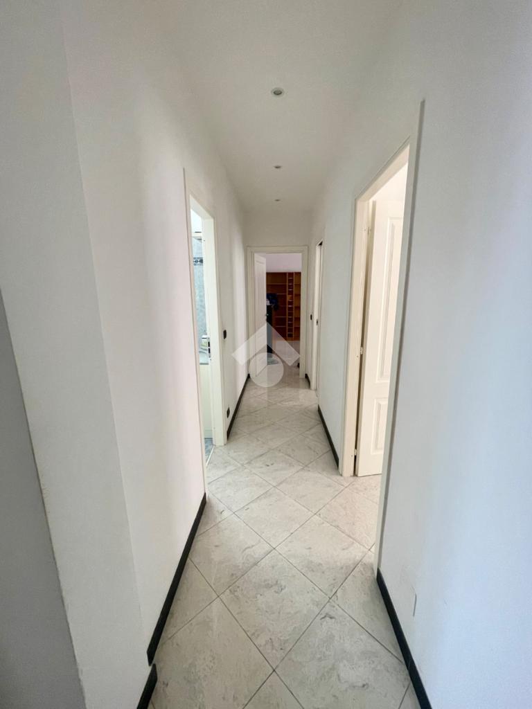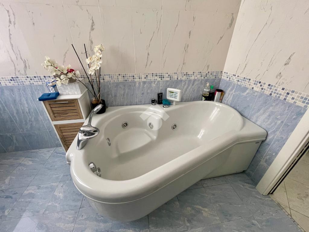 ampio ingresso, aperto sul salone doppio, 4 camere, cucina abitabile, dotata di blocco cucina su misura, doppi servizi finestrati, entrambi completi, di cui uno con con vasca idromassaggio e uno con box doccia, un ampio ripostiglio e un terrazzino vivibile esposto ad est con accesso dal salone.
