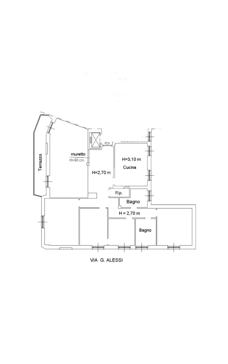 Carignano, Via Galeazzo Alessi, proponiamo prestigioso appartamento in ottimo stato interno, ubicato al quinto piano, di 7,5 vani per 185 mq, cosi composto;