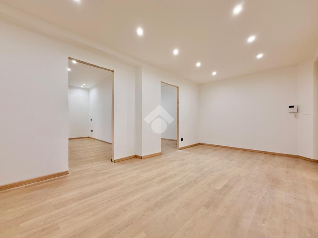 ingresso in soggiorno open space, 3 camere matrimoniali e 1 camera singola, cucina abitabile e due bagni completi con box doccia finestrati.